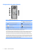 Conteúdo 1 Recursos do produto Recursos de configuração padrão ....................................................................................................... 1 Componentes do painel frontal ............................................................................................................ 2 Componentes do leitor de cartão multimídia ........................................................................................ 3 Componentes do painel traseiro ....................................
