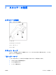 このガイドについて このガイドでは、HP リニア スキャナーのセットアップおよび使用方法について説明します。 警告! その指示に従わないと、人体への傷害や生命の危険を引き起こすおそれがあるという警告事 項を表します。 注意: その指示に従わないと、装置の損傷やデータの損失を引き起こすおそれがあるという注意事 項を表します。 注記: 重要な補足情報です。 JAWW iii