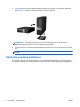 4. Leg de computer met de rechterkant omlaag en plaats de computer in de optionele standaard. Afbeelding 1-3 Desktopconfiguratie omzetten in torenconfiguratie OPMERKING: HP beveelt het gebruik van een torenstandaard aan om de computer te stabiliseren wanneer deze in een torenconfiguratie wordt gebruikt. 5. Sluit het netsnoer en eventuele externe apparatuur opnieuw aan en zet vervolgens de computer aan. OPMERKING: Zorg dat aan alle zijden van de computer een ruimte van ten minste 10,2 cm vrij blijft.