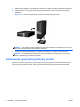 1 Elementy produktu Elementy w konfiguracji standardowej Elementy komputera różnią się w zależności od modelu. Pełną listę sprzętu i oprogramowania zainstalowanego w komputerze można uzyskać, uruchamiając narzędzie diagnostyczne (dołączone tylko do niektórych modeli komputera). Niektóre modele są wyposażone w stację dysków optycznych, natomiast inne mają w jej miejscu panel zaślepiający.