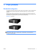1 Popis produktu Štandardná konfigurácia Konfigurácia sa môže líšiť v závislosti od modelu. Úplný zoznam hardvéru a softvéru nainštalovaného v počítači získate po spustení diagnostického obslužného programu (len v niektorých modeloch počítača). Niektoré modely obsahujú optické jednotky, zatiaľ čo iné modely sú bez mechaniky a majú len kryt zakrývajúci priestor pre optickú jednotku.