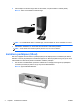 4. Placera datorn så att dess högra sida är vänd nedåt, och placera datorn i stativet (tillval). Bild 1-3 Ändra en bordsdator till stående läge OBS! För att stabilisera datorn i stående läge, rekommenderar HP att du använder en tornfot. 5. Sätt tillbaka nätsladden och eventuella externa enheter. Sätt sedan på datorn. OBS! Se till att det finns ett fritt utrymme på minst 10,2 cm runt om datorn.