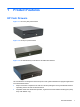 1 Product Features HP Cash Drawers Figure 1-1 HP Heavy Duty Cash Drawer Figure 1-2 HP Flip-Top Cash Drawer Figure 1-3 HP Standard Duty Printer-Driven and USB Cash Drawers HP Cash Drawers are designed to work with point of sale system hardware and program applications. The cash drawers feature: ● Deep inner drawer compartment to hold coin rolls and packaged currency with divided areas for separating various bill and coin denominations.