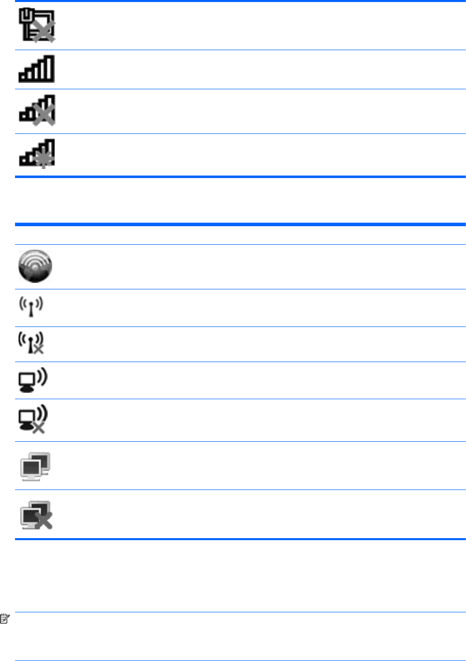 Rede (conectada) Indica que um ou mais dispositivos de rede estão conectados a uma rede.