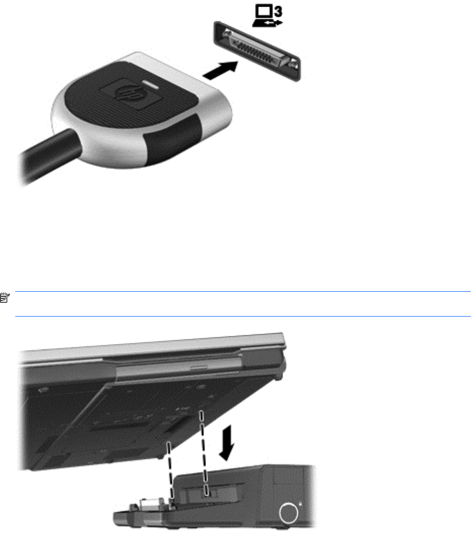 O conector de acoplamento conecta o computador a um dispositivo de acoplamento opcional. Um
