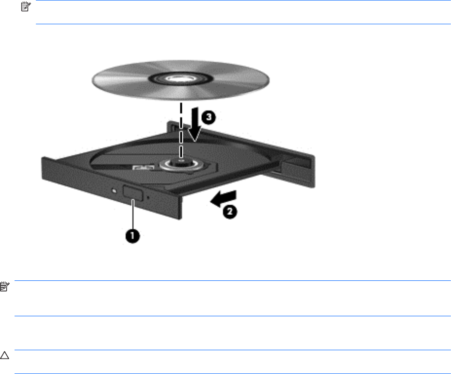 2. Pressione o botão de liberação (1) na parte frontal da unidade para liberar a bandeja de mídia.