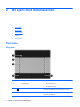 Komponent Beskrivelse (4) Venstre styreputeknapp Fungerer på samme måte som venstre knapp på en ekstern mus. (5) Høyre styreputeknapp Fungerer på samme måte som høyre knapp på en ekstern mus. Lamper Komponent (1) (2) (3) (4) Beskrivelse Styreputelampe Caps Lock-lampe Av/på-lampe Trådløslampe ● Gul: Styreputen er av. ● Av: Styreputen er på. ● Hvit: Caps Lock er på. ● Av: Caps Lock er av. ● Hvit: Datamaskinen er på. ● Blinker hvitt: Datamaskinen er i hvilemodus.