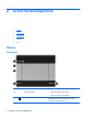 Ekraan Komponent Kirjeldus (1) Saadavad ja võtavad vastu raadiosignaale traadita kohtvõrkudega (WLAN) suhtlemiseks. WLAN-i antennid (2)* MÄRKUS. Mõnel arvutimudelil on ainult üks WLAN-i antenn. (2) Veebikaamera märgutuli Sees: veebikaamera on kasutusel. (3) Veebikaamera Salvestab videoklippe ja jäädvustab fotosid. Veebikaamera kasutamiseks valige Start > Kõik programmid > HP > HP MediaSmart > HP MediaSmart Webcam. (4) Sisemine mikrofon Salvestab heli.