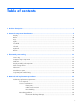 Table of contents 1 Product description ........................................................................................................... 1 2 External component identification ..................................................................................... 9 Display ................................................................................................................................... 9 Button ........................................................................................