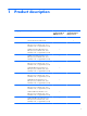 Category Description Computer models equipped with an AMD processor √ Preinstalled: Serviceability 8 ● Windows 7 Home Basic (64- and 32-bit) ● Windows 7 Home Premium (64-bit) ● Windows 7 Professional (64-bit) ● Windows 7 Starter 32-bit ● FreeDOS End-user replaceable parts: ● AC adapter ● Battery ● Hard drive ● Memory modules (2) ● Optical drive ● WLAN module Chapter 1 Product description Computer models equipped with an Intel processor √ √