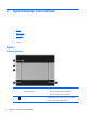 Zaslon Komponenta Opis (1) Pošiljata in prejemata brezžične signale za komuniciranje z brezžičnimi krajevnimi omrežji (WLAN). Anteni WLAN (2)* OPOMBA: Izbrani modeli računalnikov imajo le eno anteno WLAN. (2) Lučka spletne kamere Sveti: spletna kamera je vklopljena. (3) Spletna kamera Snema video posnetke in zajema mirujoče slike. Če želite uporabljati spletno kamero, izberite Start > Vsi programi > HP > HP MediaSmart > HP MediaSmart Webcam. (4) Notranji mikrofon Za snemanje zvoka.