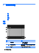 顯示器 組件 (1) 說明 WLAN 天線(兩條)* 傳送及接收無線訊號,以和無線區域網路 (WLAN) 通訊。 附註: 特定電腦機型僅有一條 WLAN 天線。 (2) 網路攝影機指示燈 亮起:網路攝影機使用中。 (3) 網路攝影機 錄製視訊和擷取靜態相片。 若要使用網路攝影機,請選取「開始」>「所有程式」>「HP」> 「HP MediaSmart」>「HP MediaSmart Webcam」。 (4) 內建麥克風 錄製聲音。 (5) 內建顯示器開關 當電源開啟時,闔上顯示器會關閉顯示器並啟動睡眠狀態。 附註: 從電腦外部看不到內建顯示器開關。 *從電腦外部看不到天線。為發揮最佳傳輸效果,請將天線周圍的障礙物移開。若要瞭解無線法規的注意事項,請參閱《法規、 安全與環境公告》中適用於您所在國家/地區的部分。您可在「說明及支援」找到這些注意事項。 10 第 2 章 瞭解您的電腦
