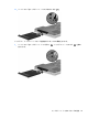 10. オプティカル ドライブをアップグレード ベイから取り出します(3)。