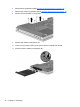 2. Povucite plastični jezičac (3) prema sredini računala da biste tvrdi disk priključili na priključak.