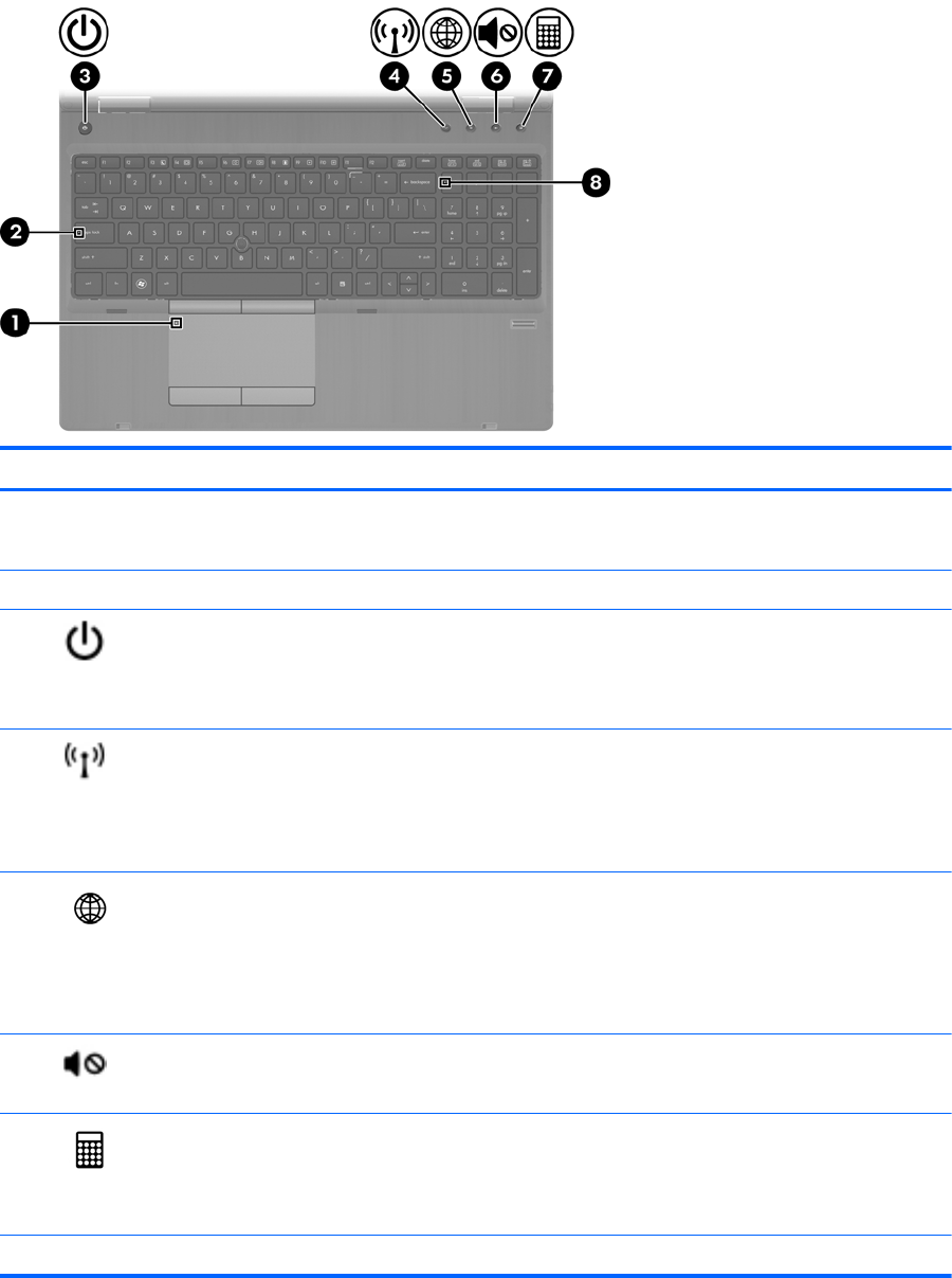 (2) Indicador luminoso de bloq mayús Encendido: Bloq mayús está activado.