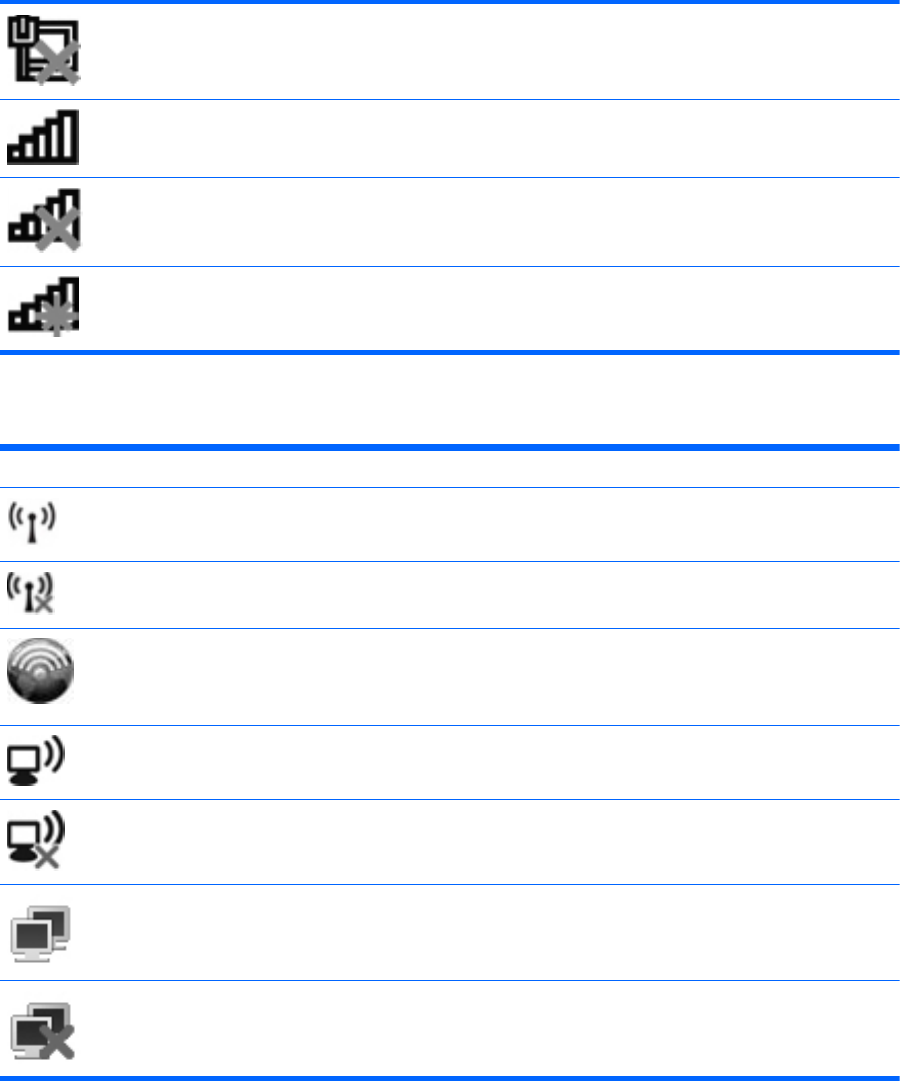 Omrežje (povezano) Prikazuje, da je ena ali več omrežnih naprav povezanih z omrežjem.