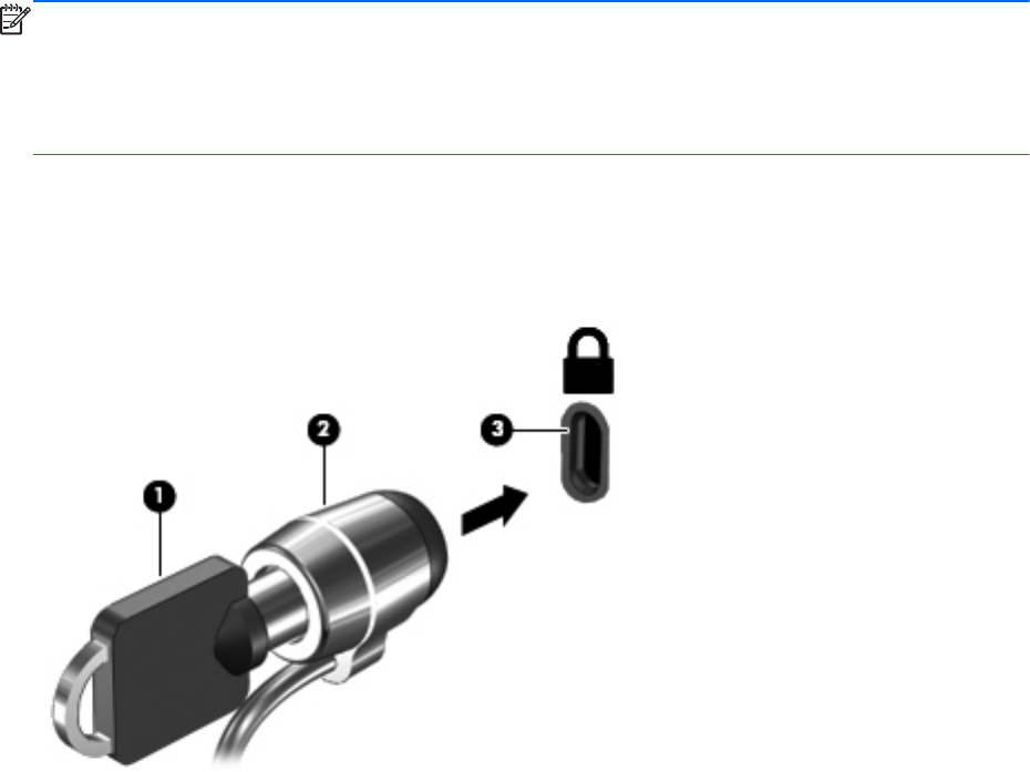 3. Kabel za priklepanje vstavite v režo na računalniku (3) in ga zaklenite s ključem.