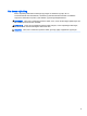 Bemærkninger om netledninger ADVARSEL! Sådan mindsker du risikoen for elektrisk stød eller beskadigelse af udstyret: ● Slut netledningen til en vekselstrømsstikkontakt, der altid er lettilgængelig. ● Frakobl strømmen fra computeren ved at tage netledningen ud af stikkontakten. ● Hvis netledningen er forsynet med et 3-bens stik, skal du tilslutte ledningen til en 3-bens stikkontakt med jordforbindelse. Undgå at gøre netledningens jordstikben ubrugeligt ved f.eks. at sætte en 2-bensadapter i.