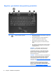 (4) Klavišo „Caps lock“ lemputė Dega: didžiųjų raidžių fiksavimas įjungtas (rašoma