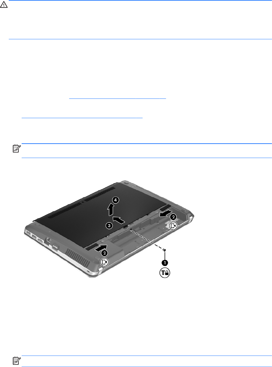 Ta bort serviceluckan så att du kommer åt minnesmodulfacket, hårddisken, etiketten med föreskrifter