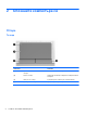 (2) Зона на тъчпада Премества показалеца и избира или активира елементи
