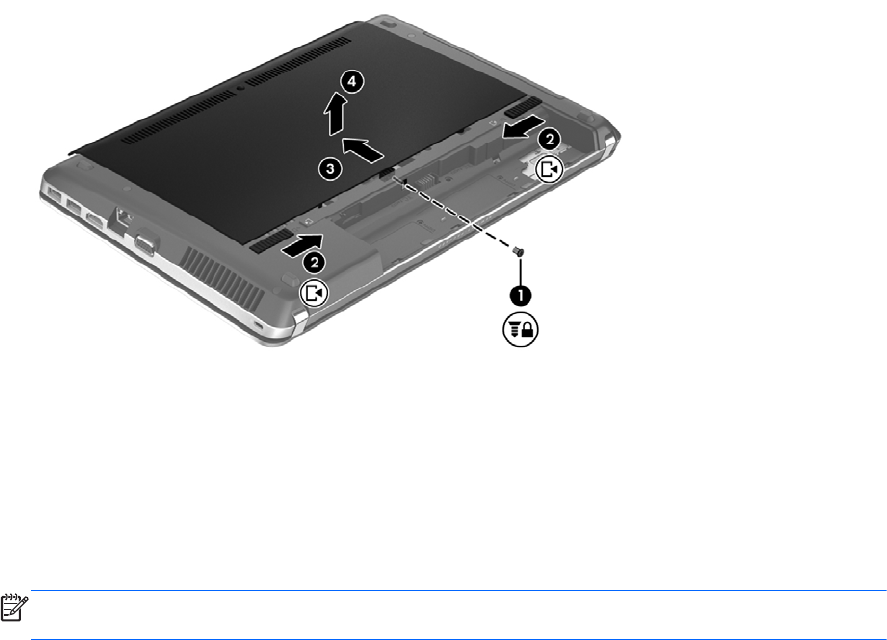 3. Плъзнете сервизната вратичка към предната страна на компютъра (3), след което