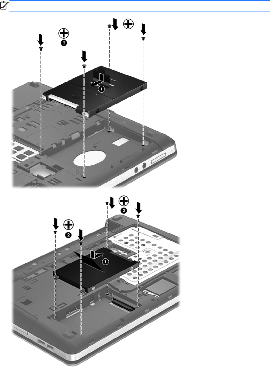 3. Поставете обратно четирите винта на твърдия диск (2).