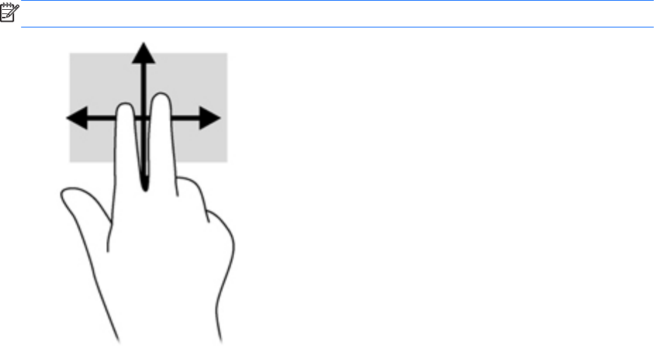 görgetéshez helyezze két ujját az érintőtáblára vagy az érintőképernyőre (csak egyes típusokon) úgy,