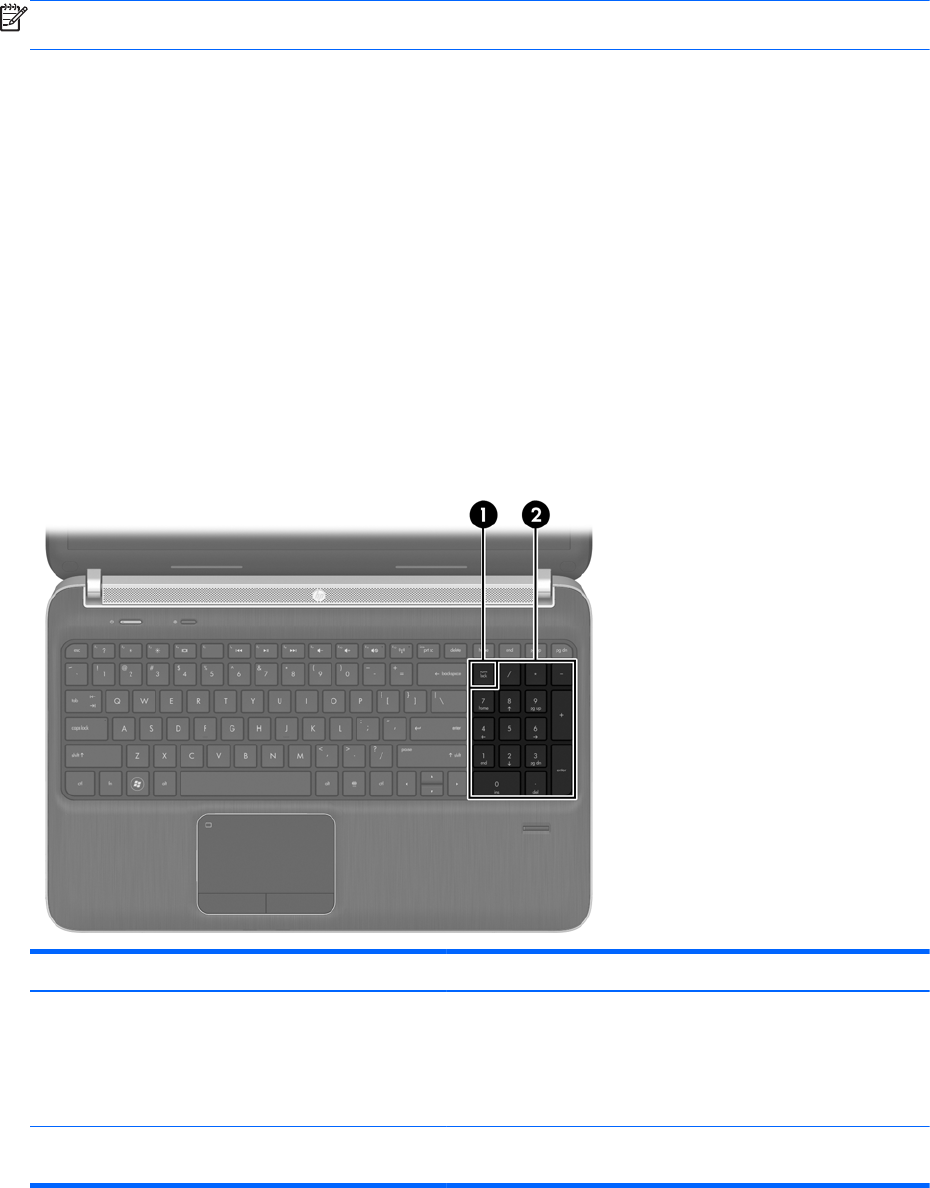 MEGJEGYZÉS: A beépített számbillentyűzet kikapcsol, ha a számítógéphez külső billentyűzet vagy