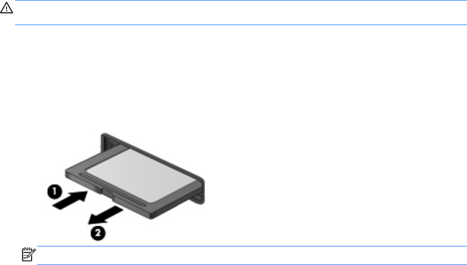 3. Nyomja befelé a kártyát (1), majd vegye ki a nyílásból (2).