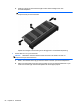 c. Tryck försiktigt ned minnesmodulen (3). Tryck både på den vänstra och högra änden av