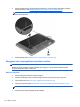 1. Tekan tombol pelepas (1) pada bezel drive untuk mengeluarkan baki cakram, kemudian tarik