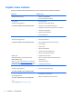 Kiirklahvi kombinatsioon Kirjeldus fn + f6 Kuvab kõigi paigaldatud akude laadimisteabe. Kuvatakse nii teave selle kohta, mis aku parajasti laeb, kui ka iga aku laetuse tase. fn + f7 Vaigistab ja taastab heli kõlarites. fn + f8 Vähendab kõlarite helitugevust. fn + f9 Suurendab kõlarite helitugevust. fn + f10 Esitab heli-CD eelmise loo või DVD või BD eelmise osa. fn + f11 Esitab, peatab või jätkab heli-CD, DVD või BD esitust. fn + f12 Esitab heli-CD järgmise loo või DVD või BD järgmise osa.