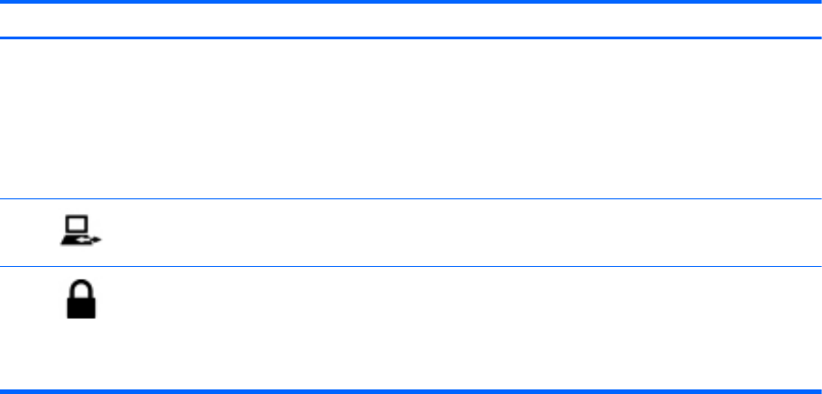 Slot para cabo de segurança Conecta um cabo de segurança opcional ao