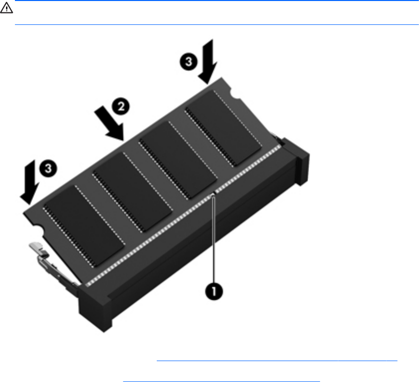 c. Lagano pritisnite memorijski modul prema dolje (3), pritišćući lijevi i desni rub memorijskog