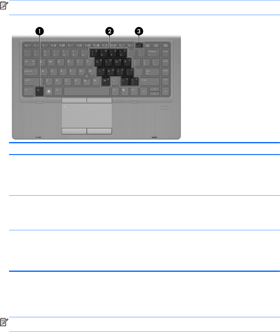 (1) Klawisz fn Włącza/wyłącza wbudowaną klawiaturę numeryczną po