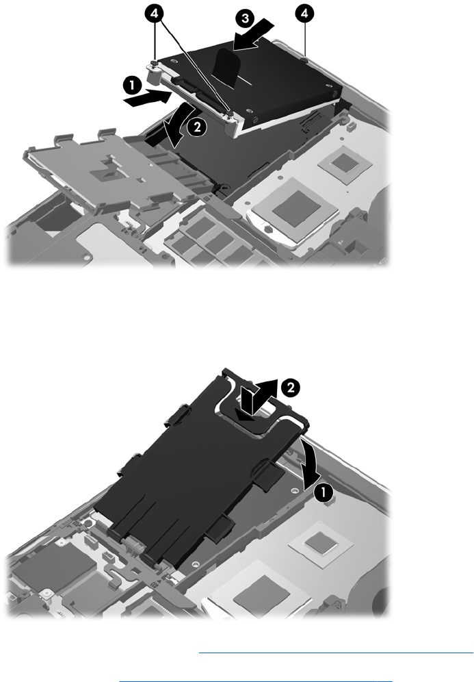 1. Włóż dysk twardy do jego wnęki pod kątem (1) i połóż go płasko na dnie (2).