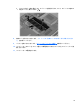 a. メモリ モジュールの切り込み(1)とメモリ モジュール スロットのタブを合わせます。