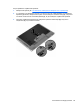 2. Издърпайте пластмасовия палец (3) към центъра на компютъра, за да свържете твърдия