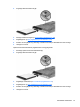2. Tõmmake kõvaketta ühenduspesaga ühendamiseks plastlapatsit (3) arvuti keskkoha poole.