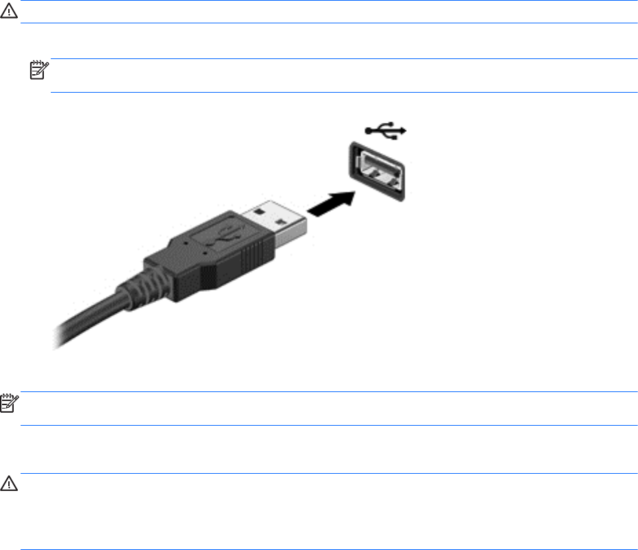 ЕСКЕРТУ: USB қосқышын зақымдау қаупін азайту үшін, құрылғыны күштеп қоспаңыз.