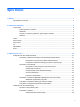 przełączanie wyświetlania obrazu 37 regulowanie głośności 37 tryb uśpienia 37 zmniejszanie głośności dźwięku głośnika 37 zmniejszanie jasności ekranu 37 zwiększanie głośności dźwięku głośnika 37 zwiększanie jasności ekranu 37 skróty klawiaturowe, multimedia 40 skróty klawiaturowe, położenie 36 skróty klawiaturowe multimediów 40 słuchawki, podłączanie 40 SoftPaq, pobieranie 98 Sprawdzanie baterii 48 sprawdzanie funkcji audio 41 stany oszczędzania energii 45 system nie odpowiada 45 Ś środowisko pracy 113 T te