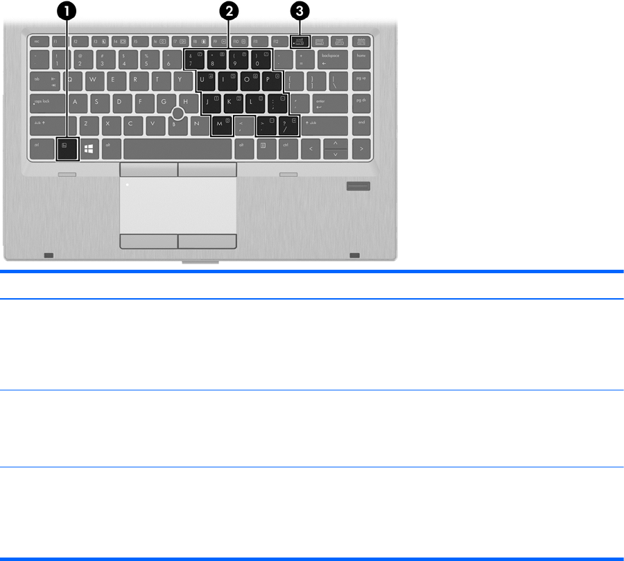 (1) Klávesa fn Zapíná a vypíná vestavěnou numerickou klávesnici, pokud je