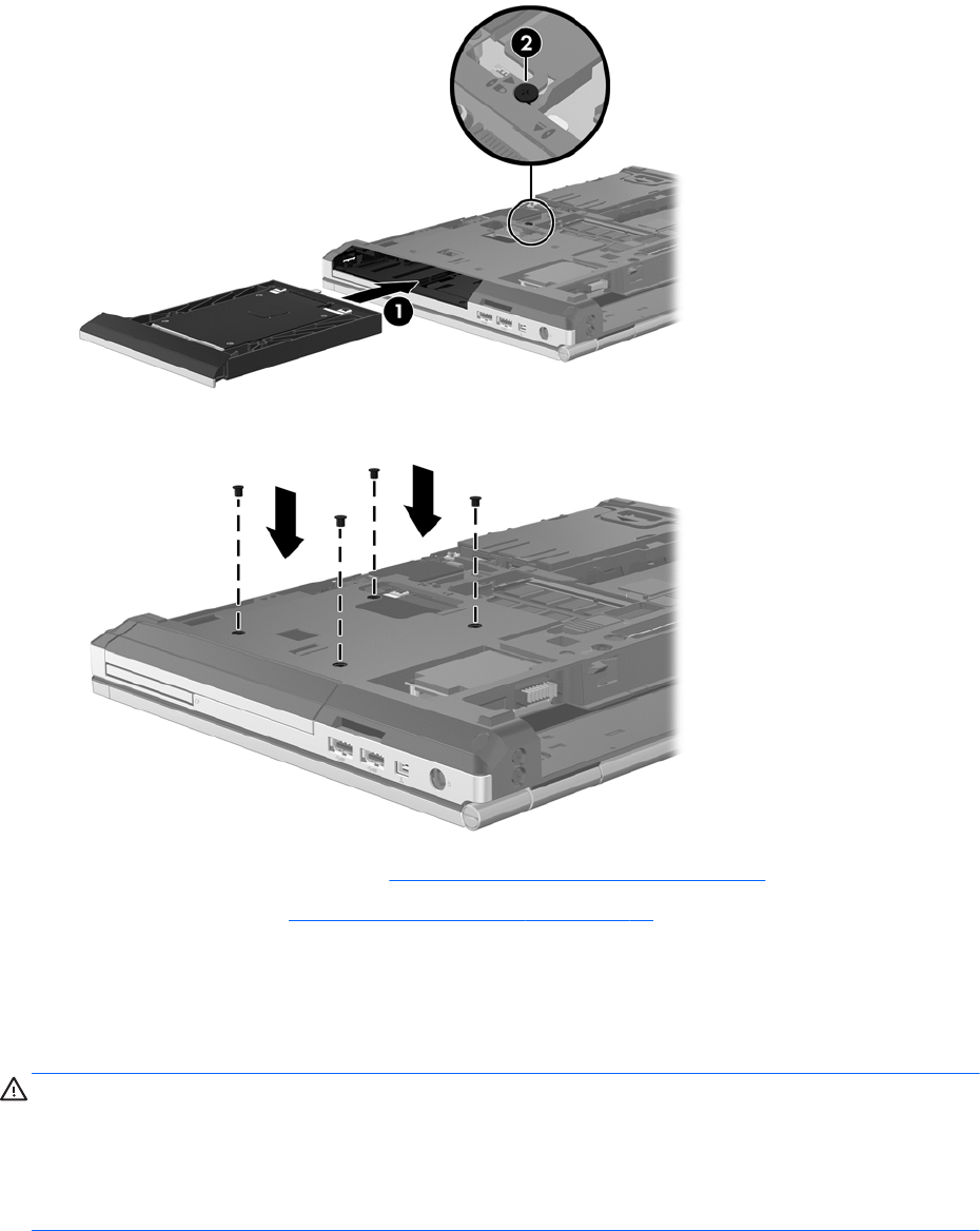 1. Vložte pevný disk (1) do rozšiřující zásuvky a utáhněte šroub rozšiřující zásuvky (2).