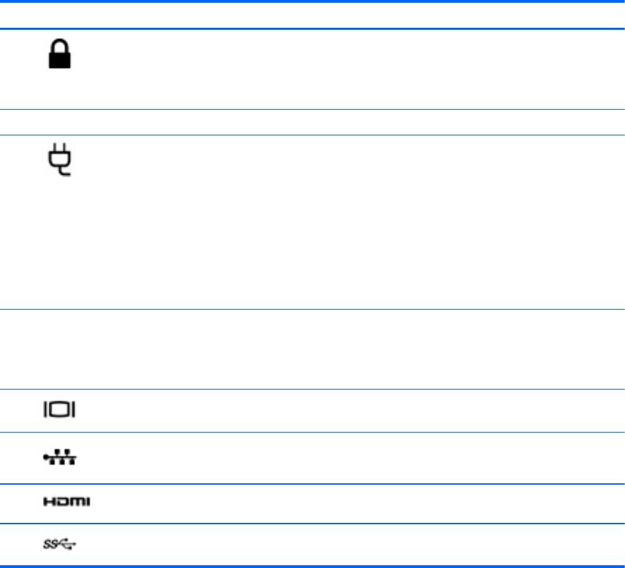 Plats för säkerhetskabel Kopplar en säkerhetskabel (tillval) till datorn.