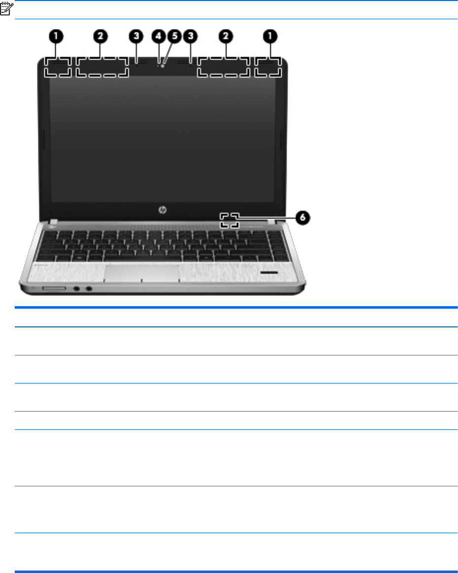 (2) WWAN-antenner (2)* (endast vissa modeller) Skickar och tar emot trådlösa signaler över trådlösa WWAN-