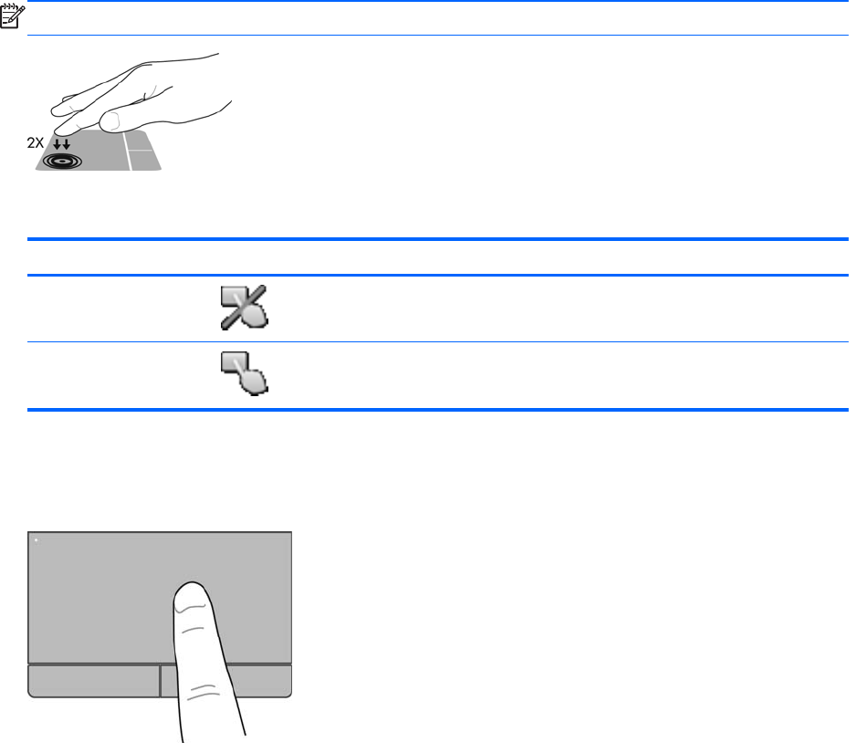 Sätt på eller stäng av styrplattan genom att dubbelklicka snabbt på styrplattans på/av-knapp.