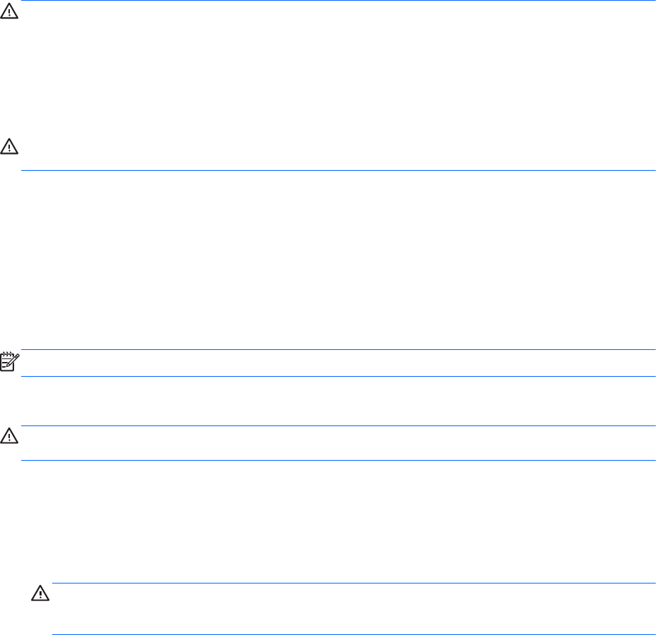 VARNING: Rengör inte datorn när den är startad. Du kan få en stöt och komponenterna kan