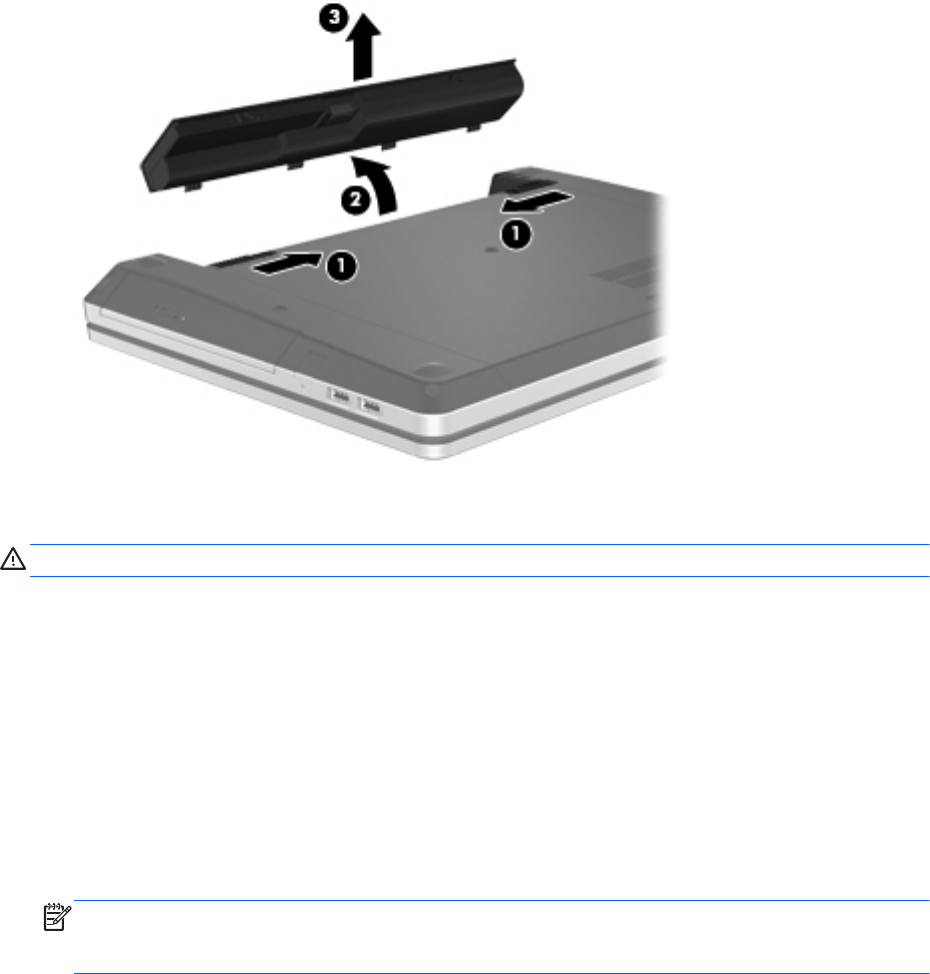 2. Плъзнете батерията нагоре (2), след което я извадете от отделението (3).