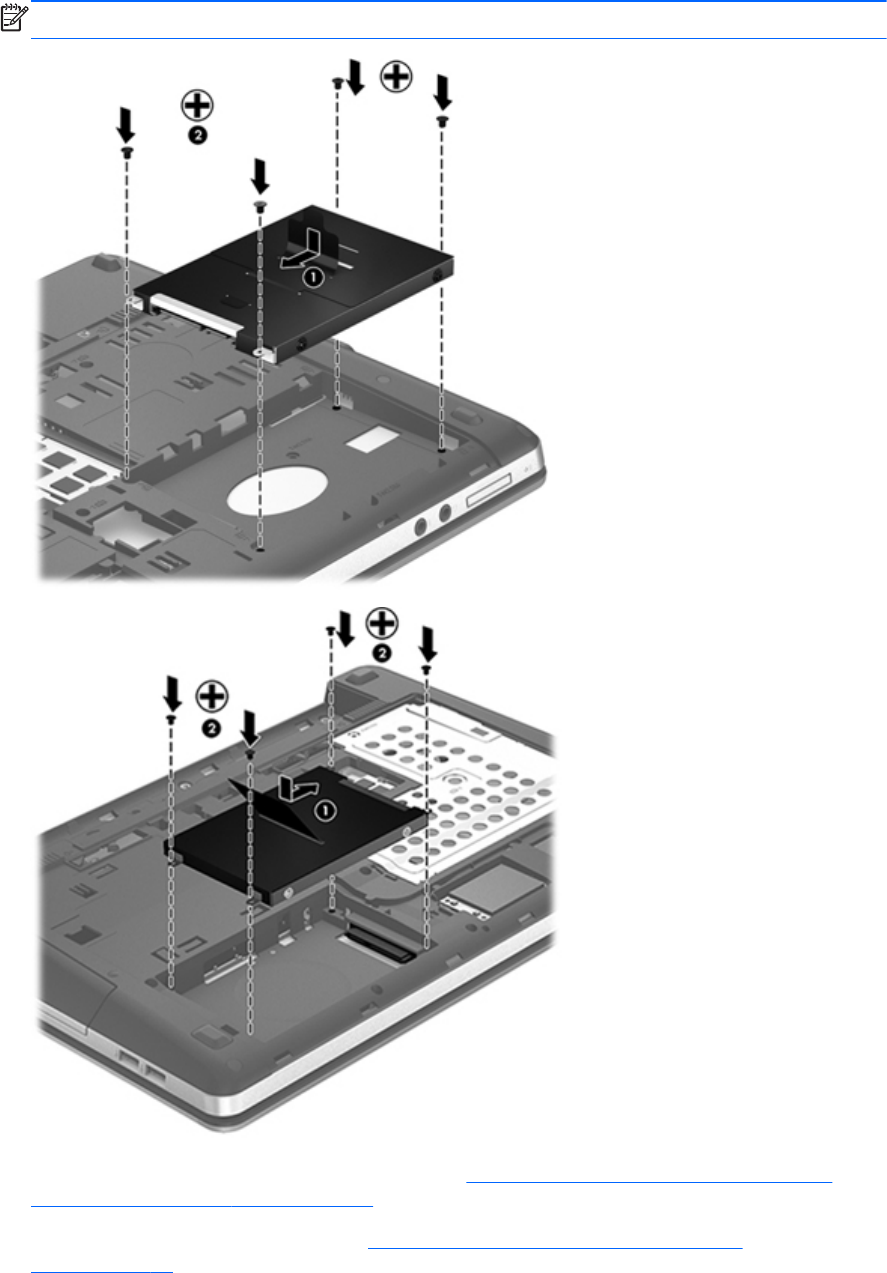 3. Поставете обратно четирите винта на твърдия диск (2).